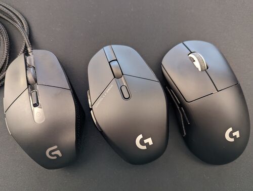 予約していたG303SHが届きました! 左からG303、G PRO LIGHTSPEED、G303 Shroud Edition 横幅が旧G303よりも少し広く、重さが他の2つのマウスよりも10g程度重いです。 G303の形で摘み持ちの私が気に入っているところは、横幅の広さと、クリックボタン上面が…